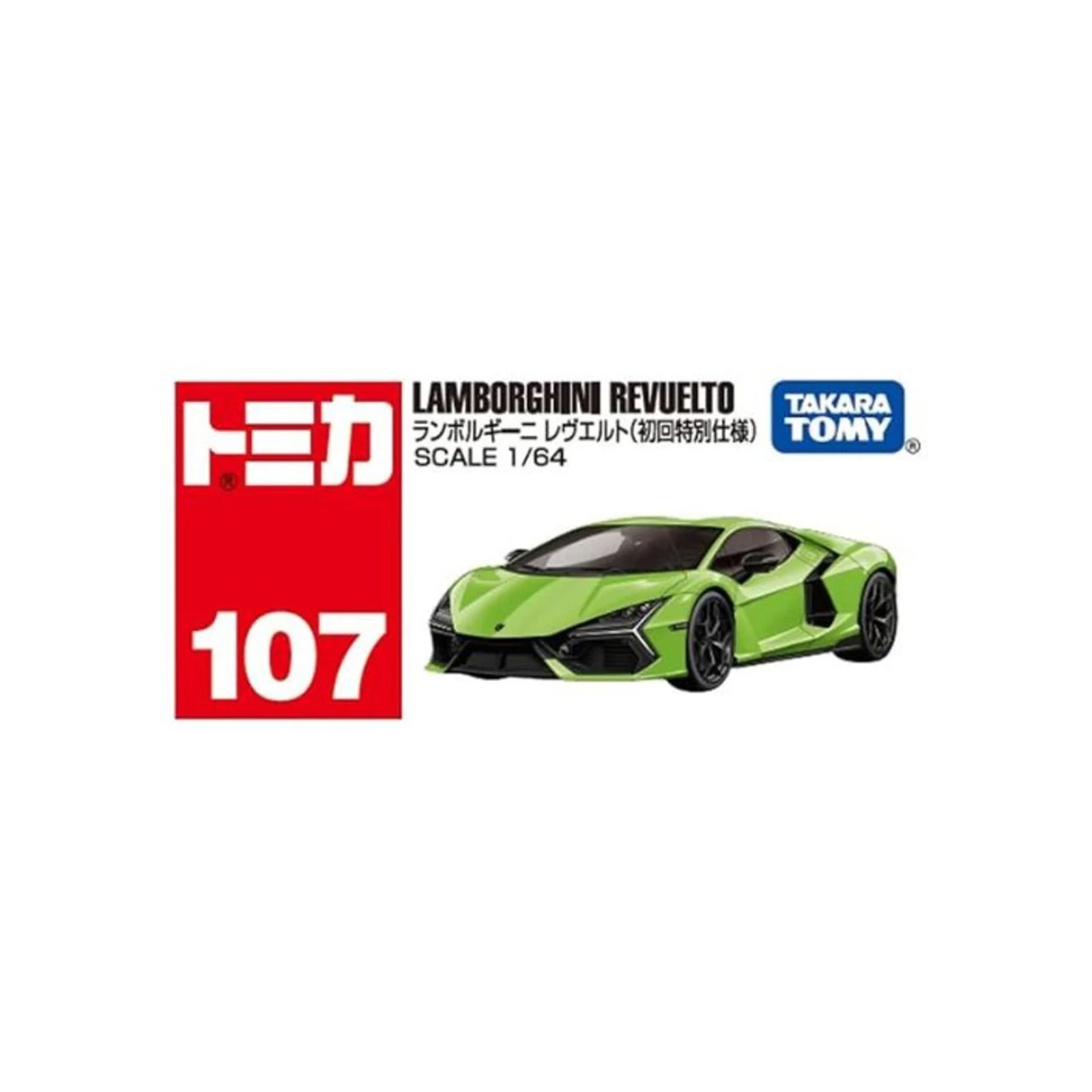 - Tomica No. 107 Lamborghini Revuelto (Special First Edition) is a toy released within the classic Tomica toyline.