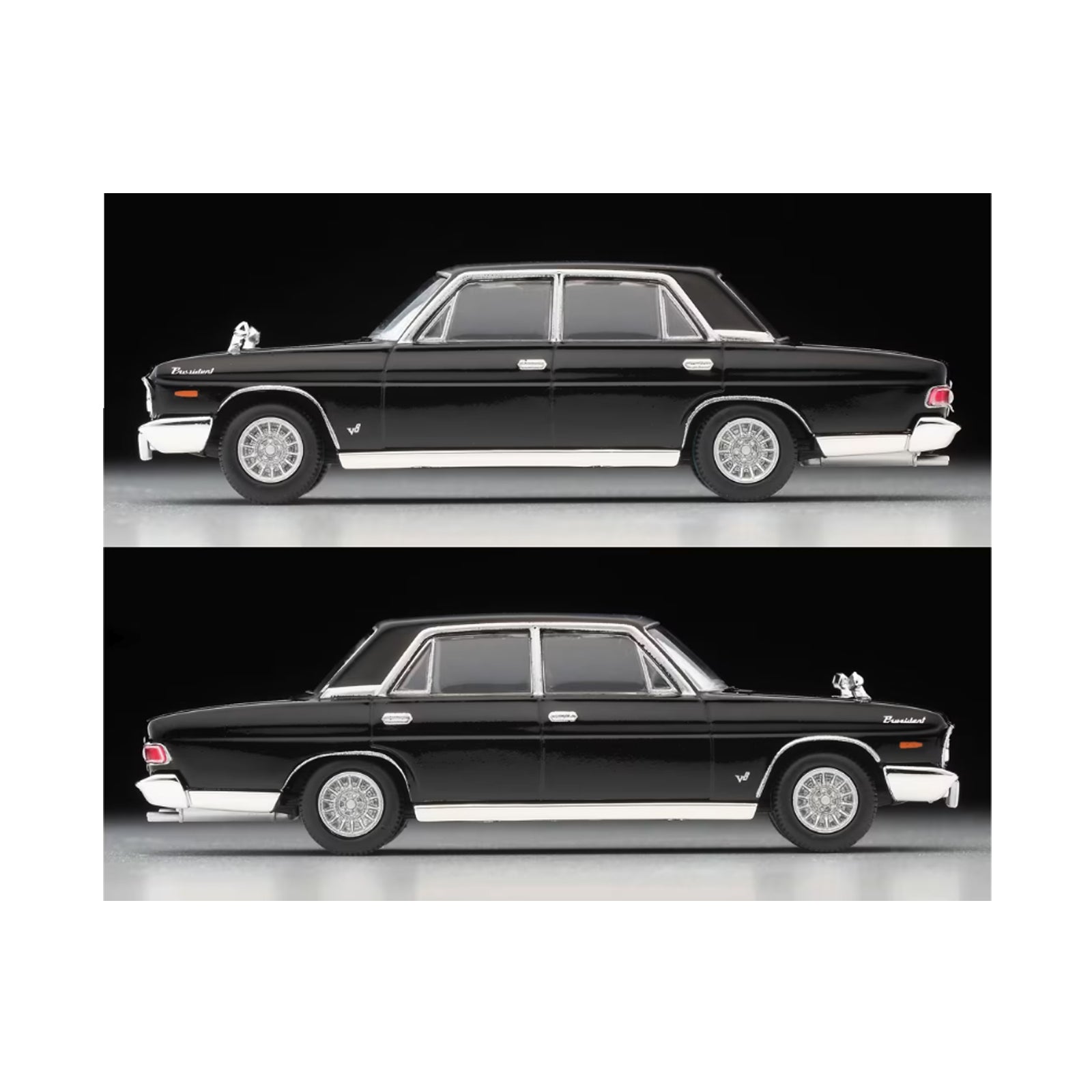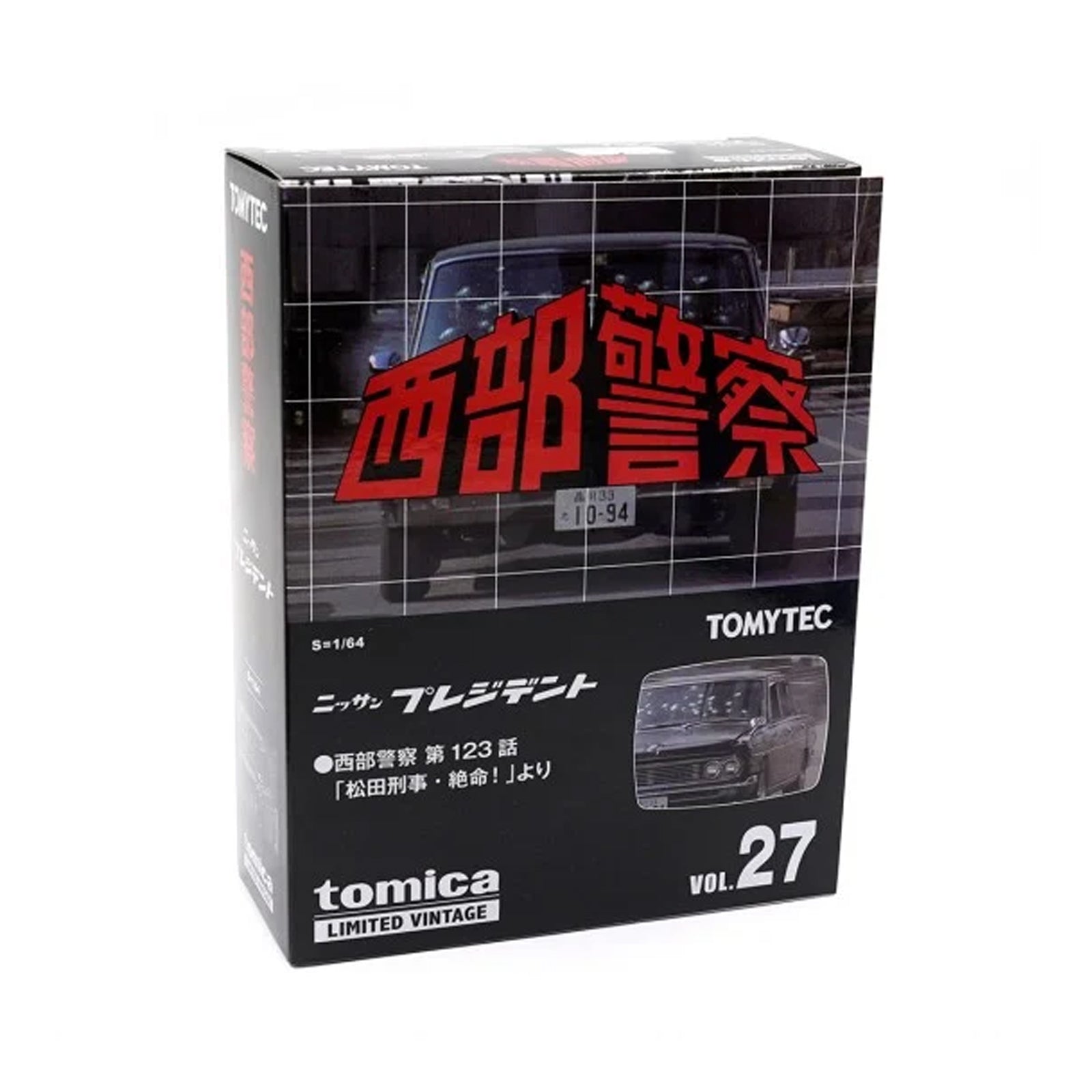 Experience the precision of Tomytec's Tomica Limited Vintage collection with the 1/64 scale Seibu Keisatsu 27 Nissan President in black. This detailed model captures the elegance and style of the iconic vehicle, perfect for collectors and enthusiasts alike.