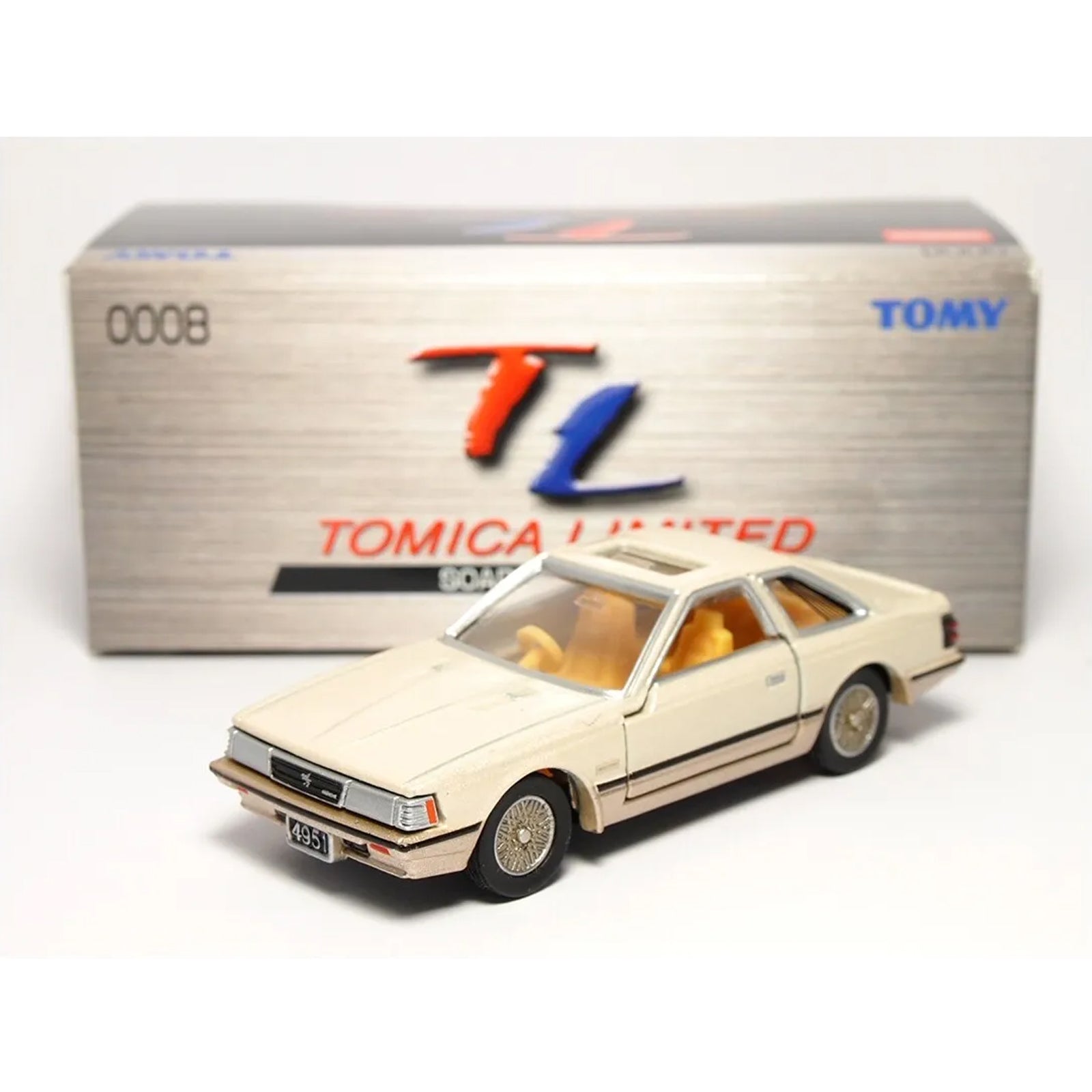 The Toyota Soarer 2800GT [TL 0008] is a highly detailed model car from Tomica Limited, meticulously crafted at a 1:65 scale. With its accurate representation of the Toyota Soarer 2800GT, this model offers a professional and informative view into the world of automotive design.